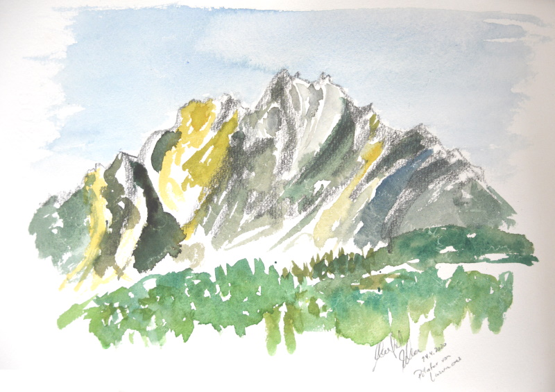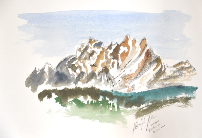 Pilatus 2’128 m.ü.M. Aquarell von Manfred Jehle, 24.04.2020
