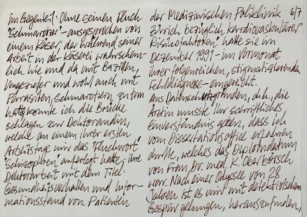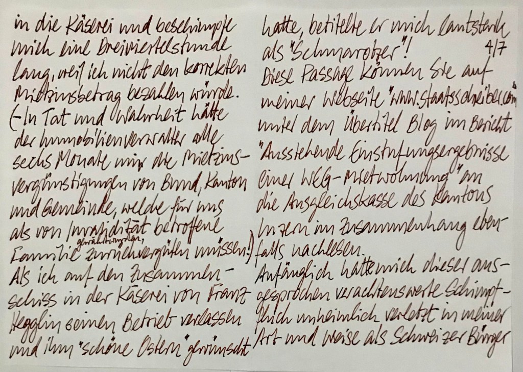 Zwischenzeitlich habe ich mich bei den drei Personen, denen ich mein Vorhaben angekündigt hatte, förmlich entschuldigt; und bei Herrn Schärer bedanke ich mich für seine Anwesenheit: Er war offensichtlich zur richtigen Zeit am richtigen Ort.